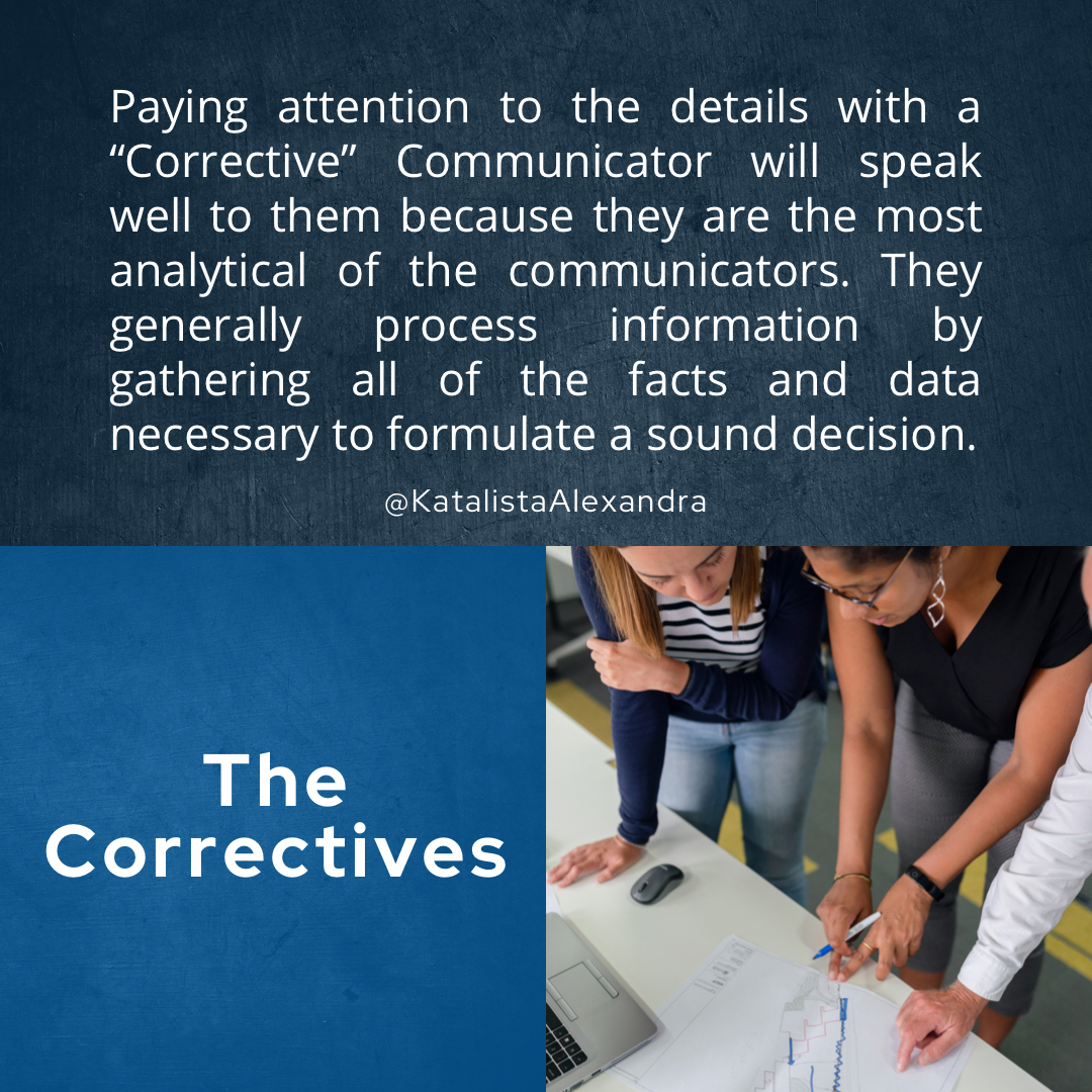 People with a Corrective profile are detail-oriented, analytical, and systematic. They are highly organized and seek precision and accuracy in their work. They are diligent problem-solvers, but their focus on perfectionism may sometimes lead to overthinking.