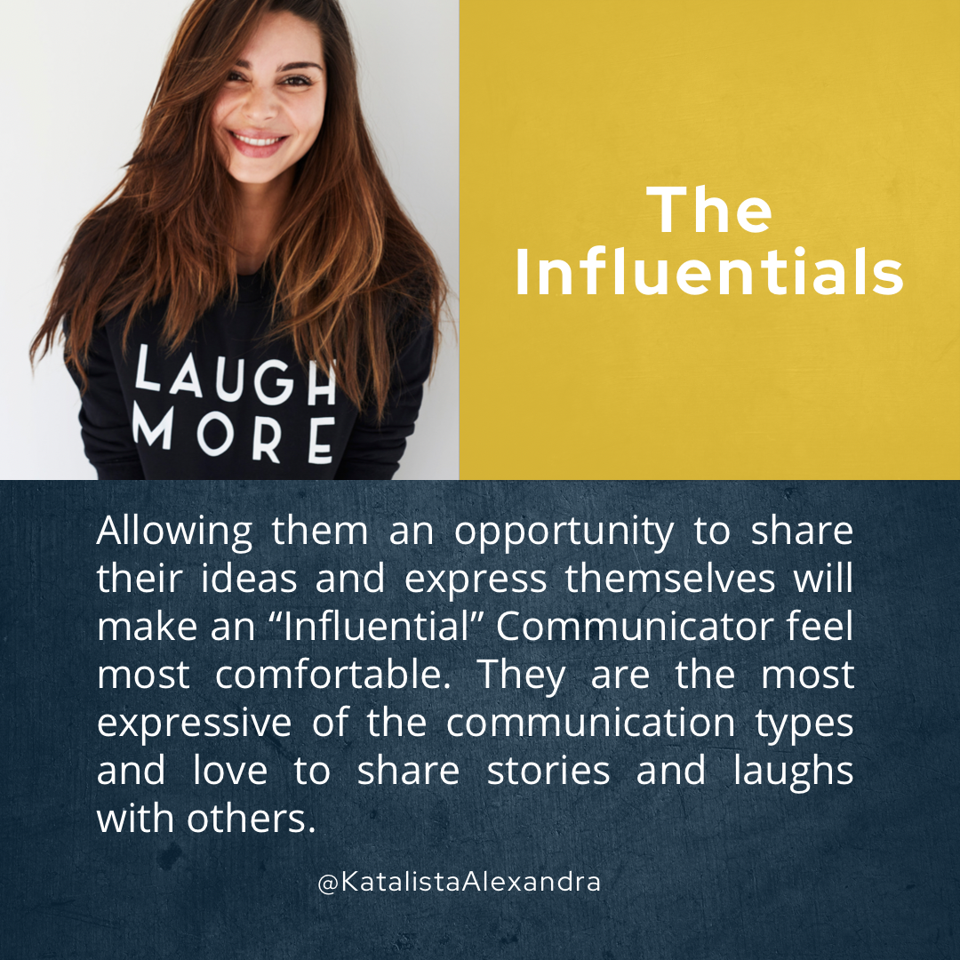 The "Influential" profile is characterized by outgoing, enthusiastic, and sociable individuals. They thrive in social settings and are skilled at inspiring and motivating others. They have a positive and charismatic presence, making them excellent team players and natural influencers.
