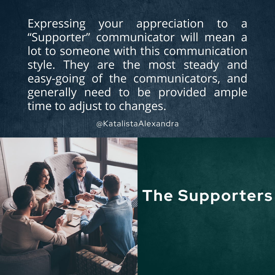 Supporter profile individuals are known for their steadiness, patience, reliability, and preference for harmony. They are excellent listeners and maintain stable, consistent relationships. They are often perceived as empathetic and compassionate, making them strong team players and mediators.